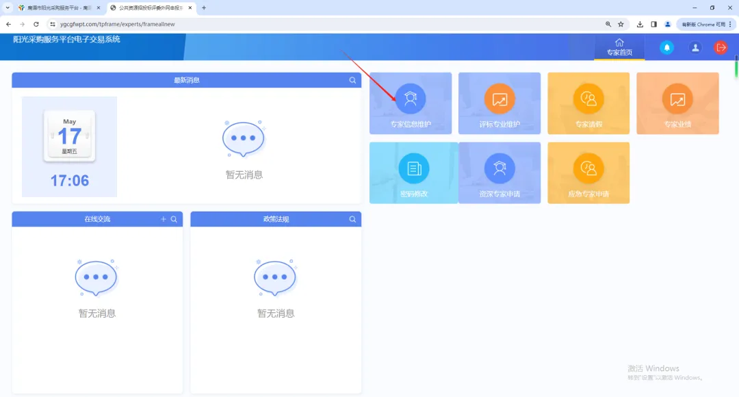 备注:专家注册信息经阳光平台审核通过后,方可登录账号进入页面填报评审专业。