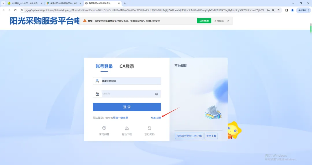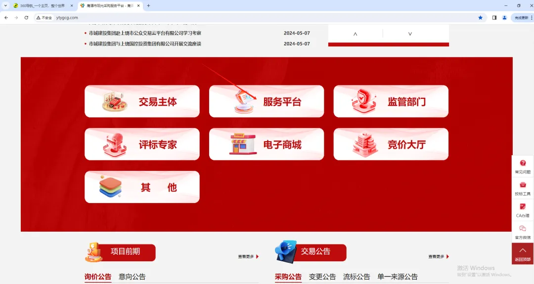 1.搜索http://www.ytygcg.com/,点击“服务平台”