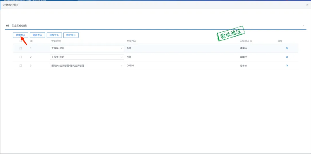 1.登录账号,确认信息审核通过。点击“评审专业维护”,填报评审专业。